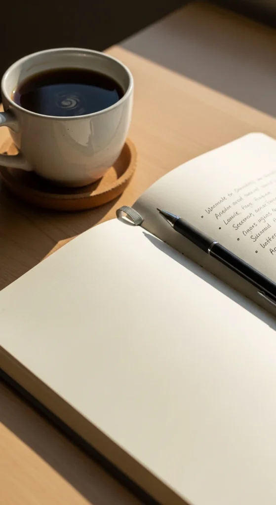 Use a cheap notebook or even loose paper. The goal is clarity, not design. Review this page every morning. Read it slowly and remind yourself what needs to be done today. This reduces confusion and helps focus your energy on one direction instead of many scattered ideas.
