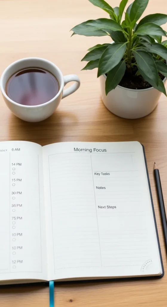 Divide your day into focus blocks. Write what task goes in each block. Keep it simple and realistic.