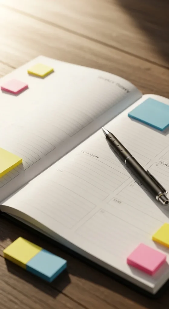 Once a week, write your main goal for the week. Then break it into smaller actions. Keep it short and practical. Write what must be finished and what can wait.