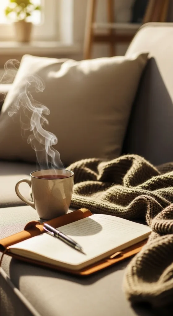 Write about a simple comfort like tea, music, or quiet time. Focus on how it feels in daily life. This builds awareness of small joys.