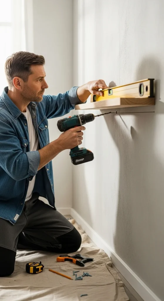 • Level, tape measure, and stud finder