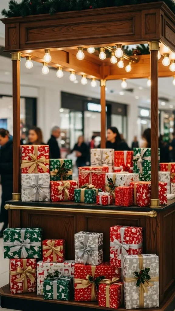 Seasonal booths draw strong foot traffic. Keep the setup simple. One table, wrapping rolls, and sample displays work well.