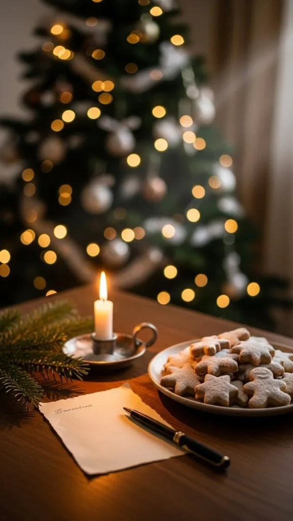 - Warm lighting — Turn on fairy lights or your Christmas tree first.