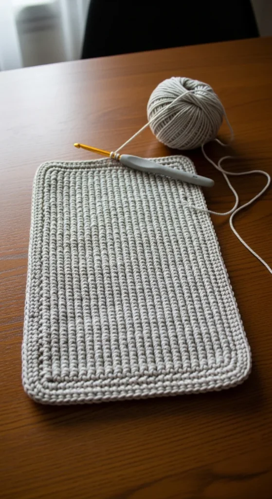Check firmness as you go. If the fabric feels loose, switch to a smaller hook.
