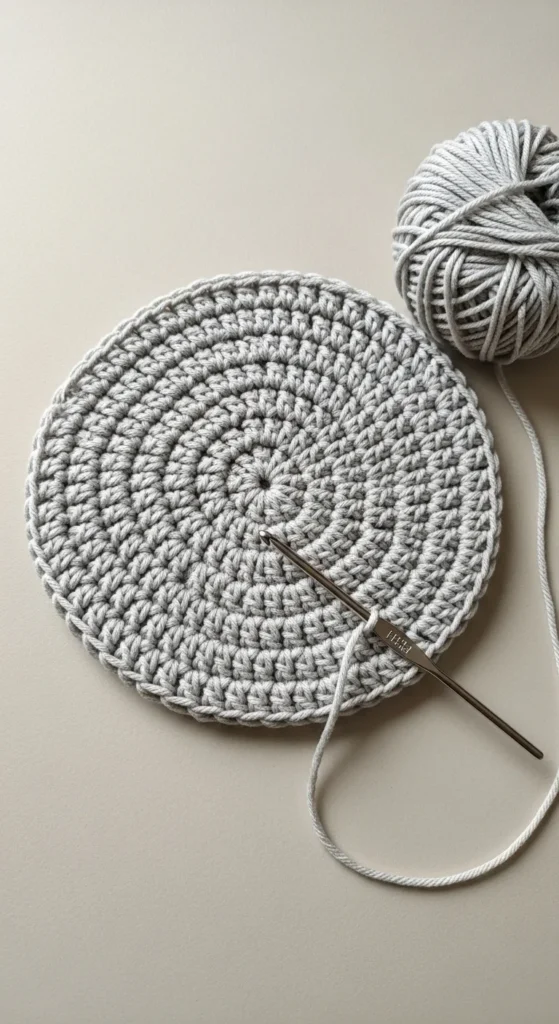 Each round increases evenly so the circle stays flat. You’ll add a few stitches in each round.
