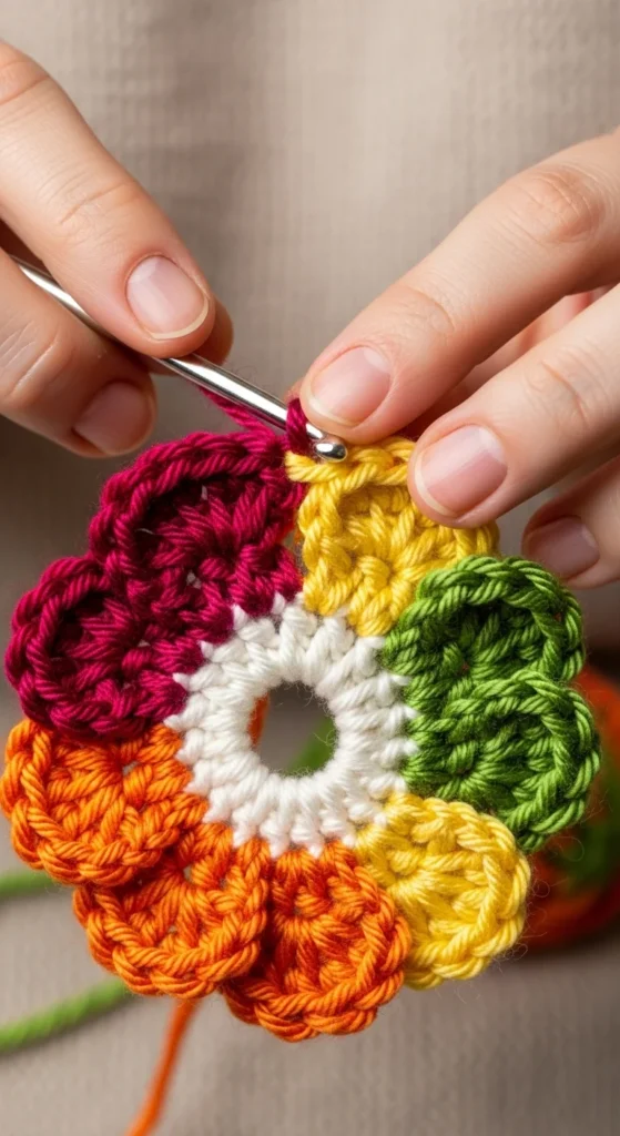 Color changes make crochet flowers pop.