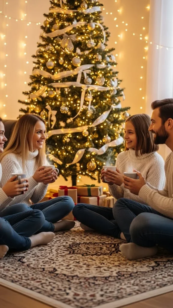 Starting the day with gratitude sets a soft, loving tone for the entire celebration. It doesn’t have to be formal. Just gather somewhere warm and comfortable—around the tree, near the fireplace, or at the breakfast table.
