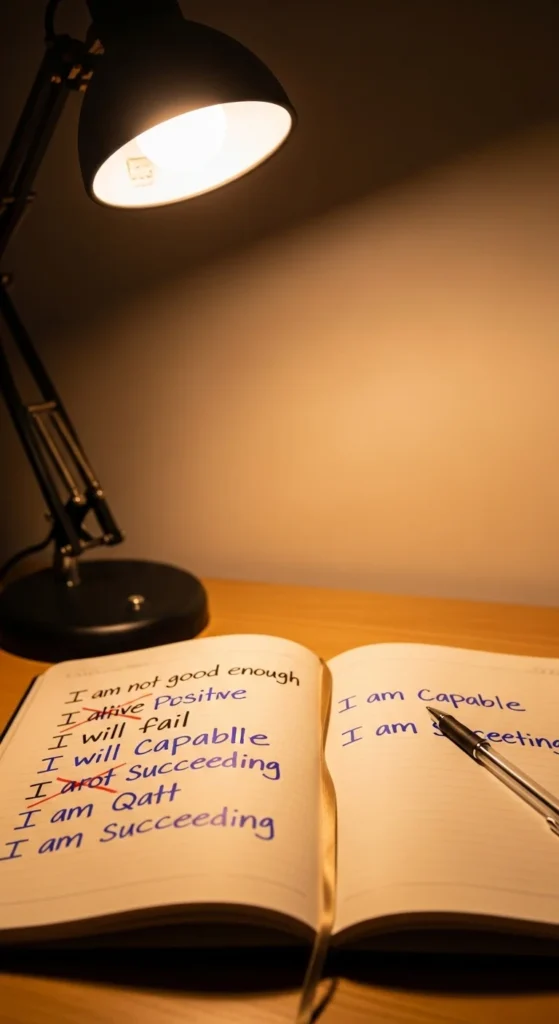 Example: “I cannot succeed” becomes “I learn and improve steadily.”
