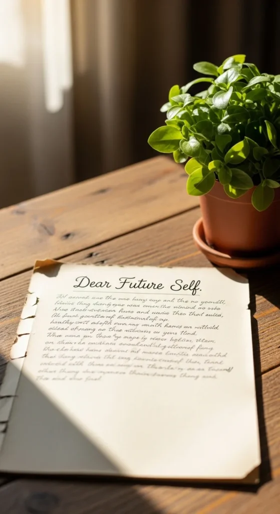 This method involves writing a letter from your present self to your future self. You describe where you want to be in a few months or a year. Write as if it already happened.