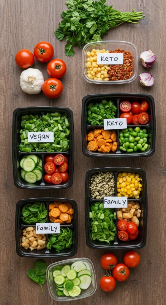 - Stick to 5–7 core recipes each week to simplify prep and reduce waste.