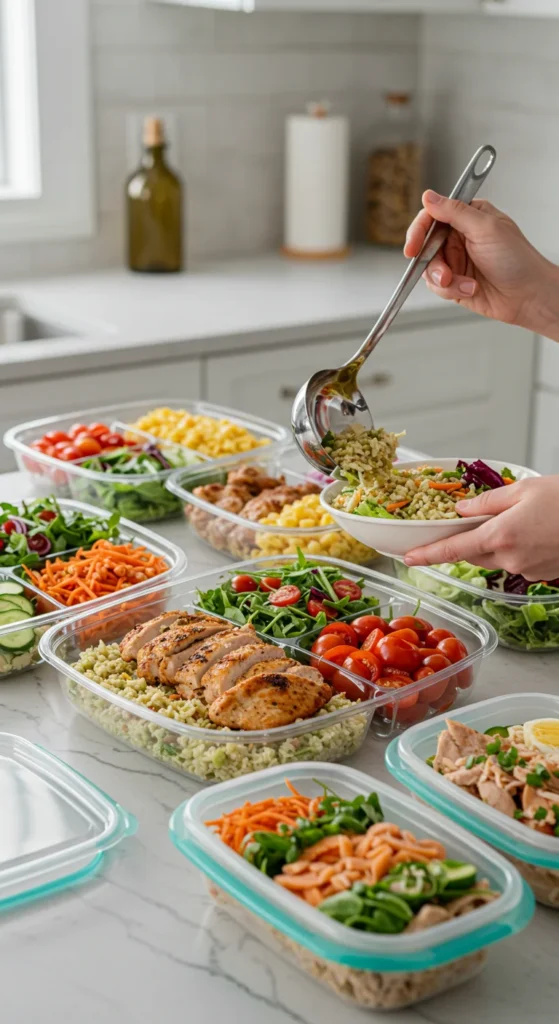 - Use ingredients that can work across multiple dishes (e.g., grilled chicken in both salads and bowls).