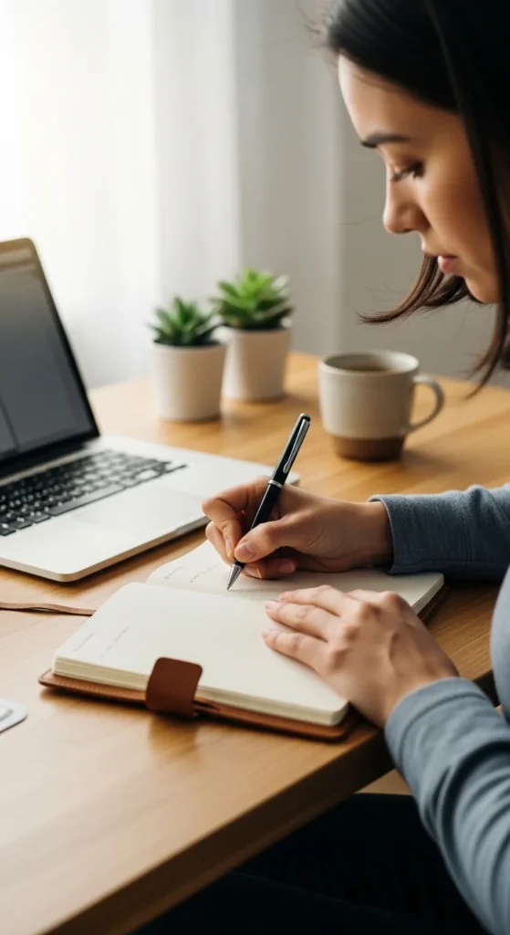 You don’t need long journaling sessions. Just a quick check-in creates clarity.