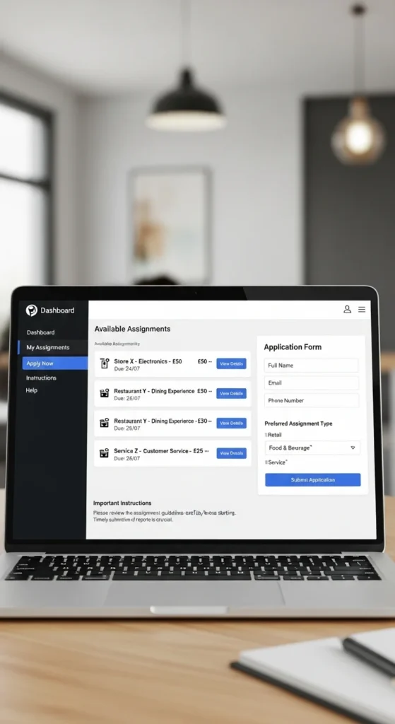 Once approved, you can start picking assignments. Each job comes with clear guidelines—what to observe, how to interact with staff, and what to report. For example, you might be asked to: