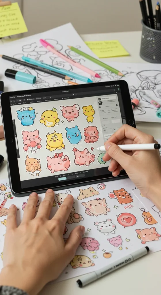 - Sticker sheets or bundles can sell for $5–$15, depending on complexity.