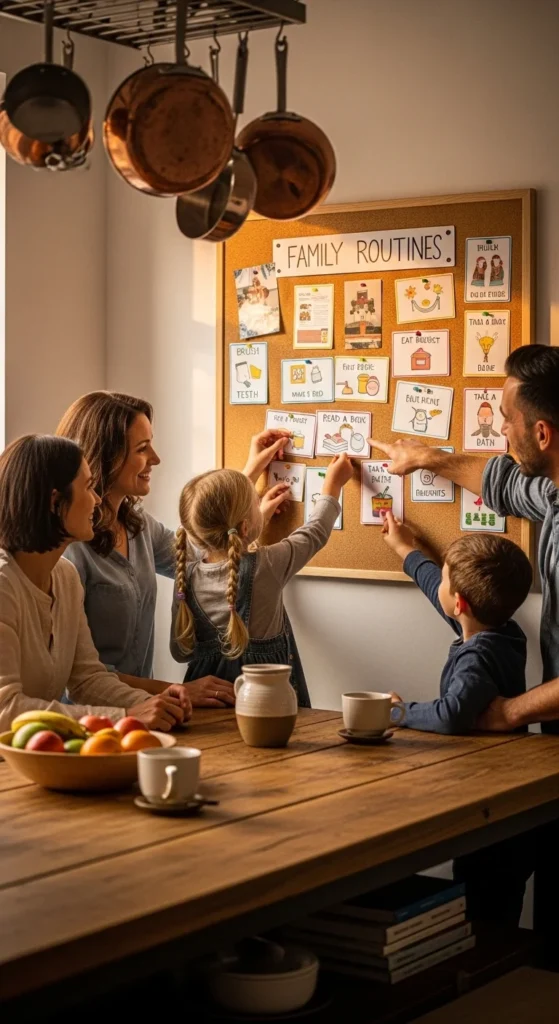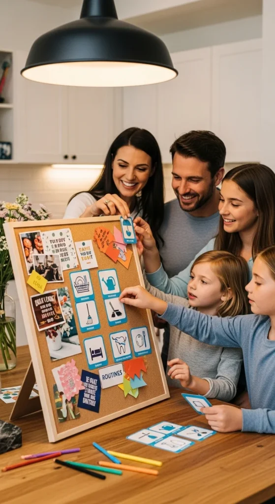 Traditions create stability. Add holiday ideas, birthday rituals, or weekly game nights. Visual reminders make traditions consistent.