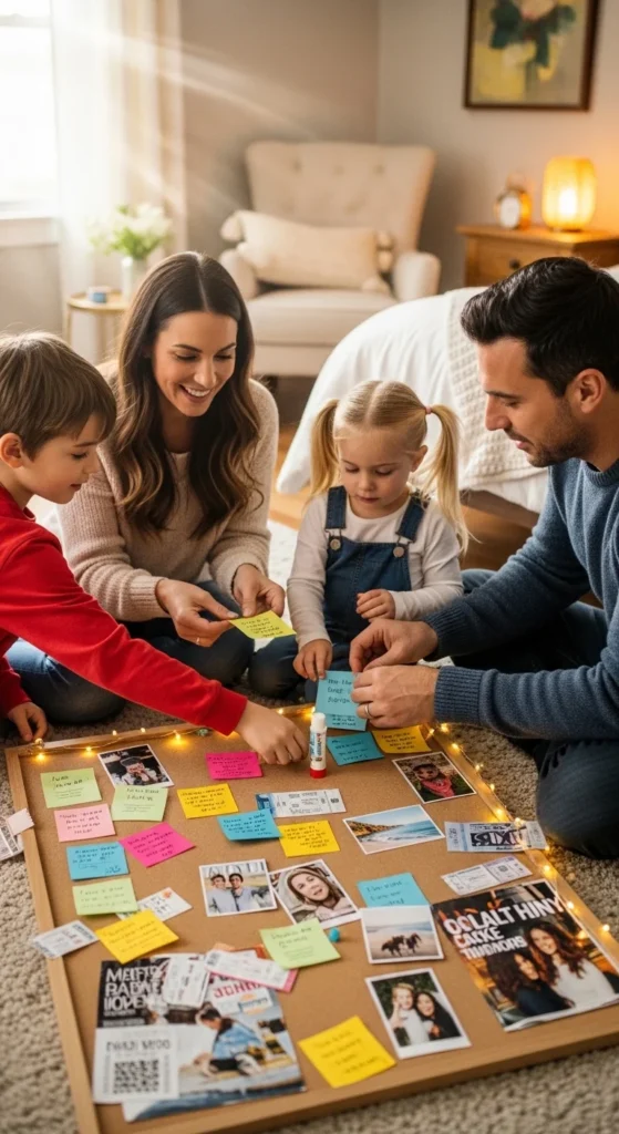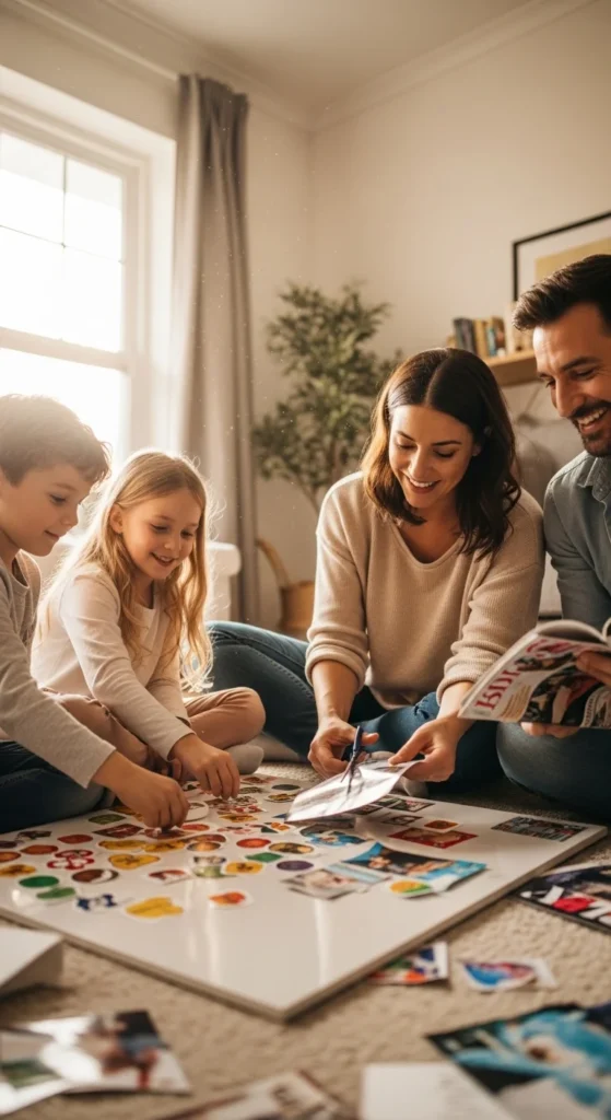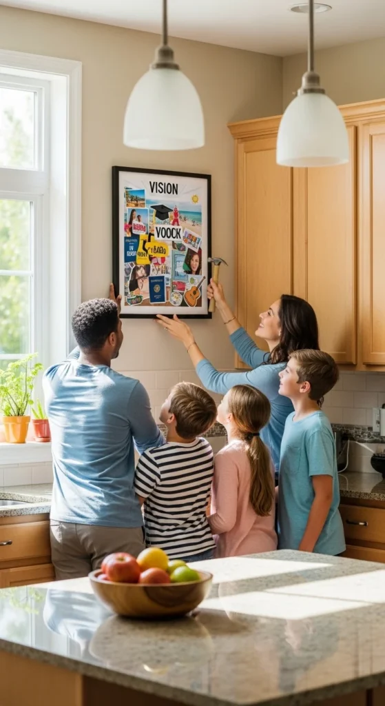 A family vision board creates alignment around shared goals, routines, and experiences. Start simple and let every family member contribute. Use affordable materials and keep the board visible. Review it regularly so ideas evolve. The value comes from the conversations, teamwork, and small actions that happen afterward.