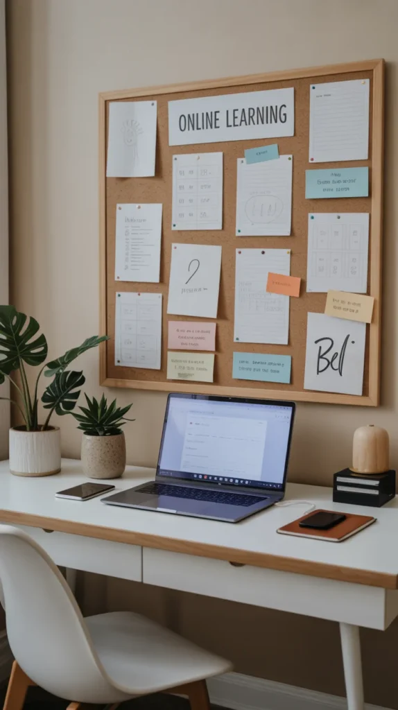 This board supports digital study habits. Use images of tidy online workspaces.