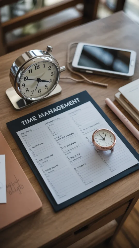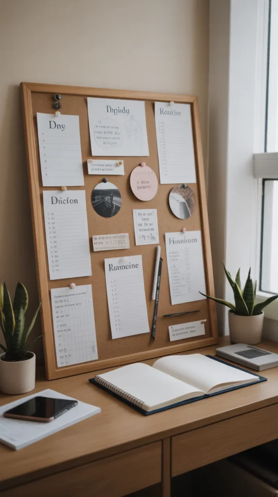 Time management boards help structure the day. Choose images of planners, schedules, and focused work blocks.