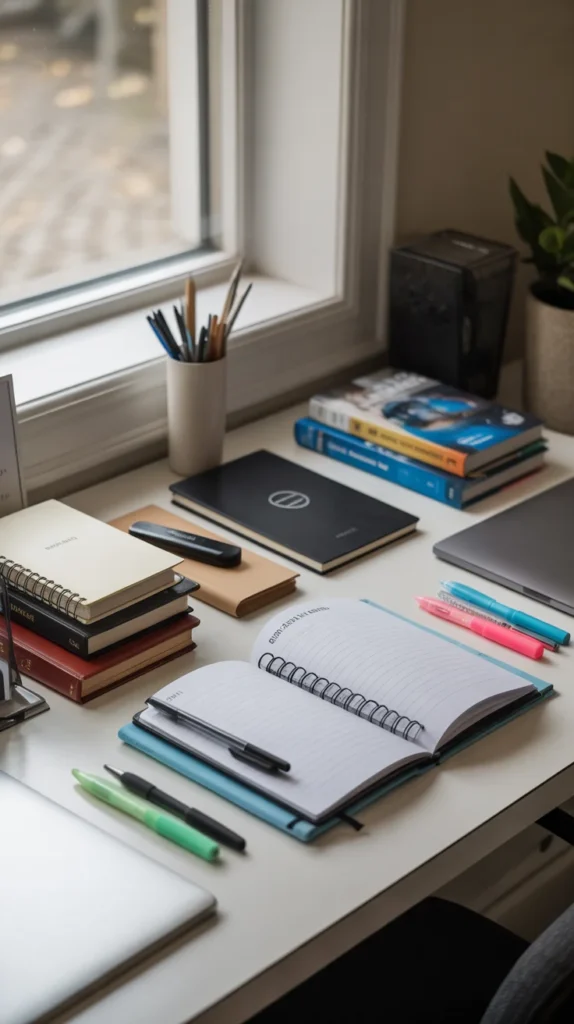 Choose images of organized notes and study materials.
