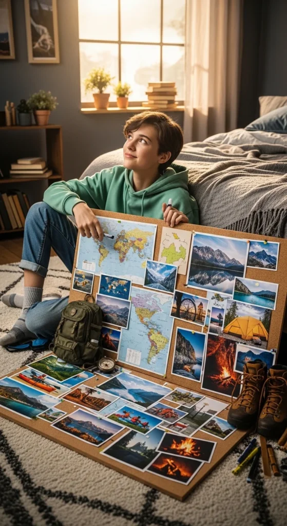 Travel boards expand perspective. Include local trips and long-term destinations.