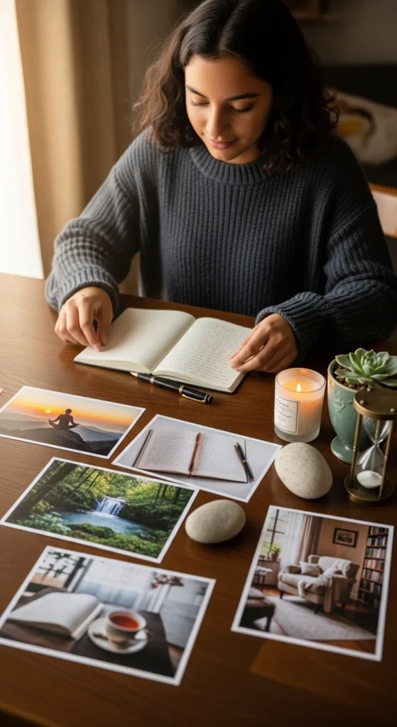 Personal growth boards highlight emotional development. Include journaling, reading, new skills, and reflection.