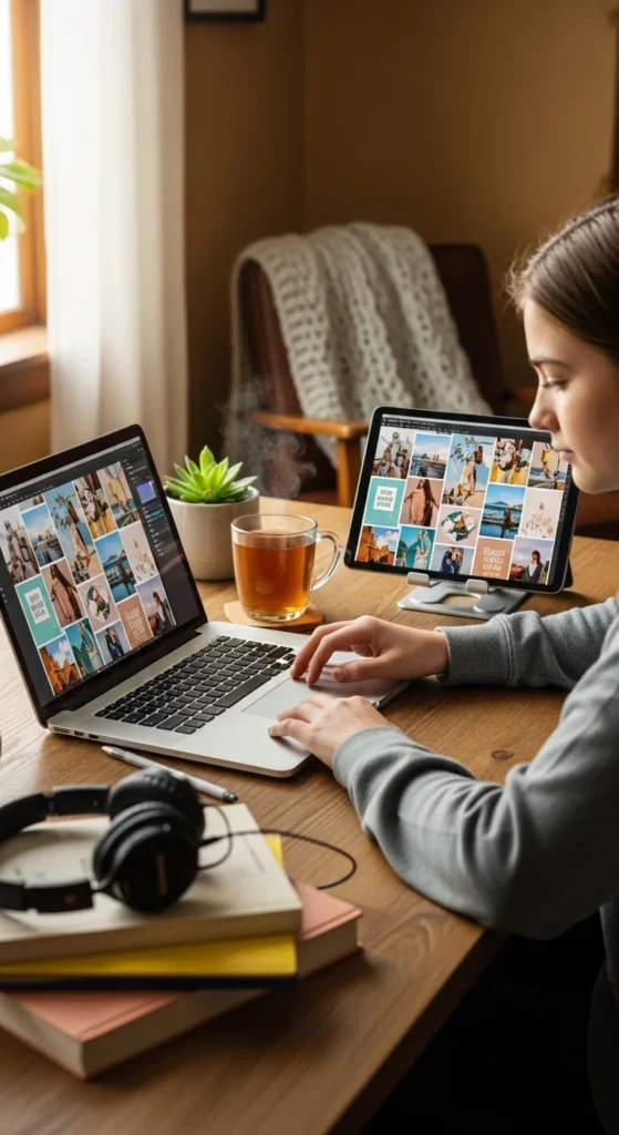 Screenshots, saved photos, and mood boards work well. Digital formats allow experimentation without wasting materials.