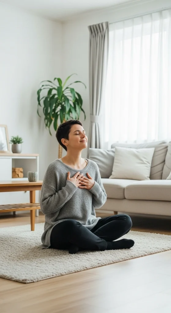 Pair this with slow breathing. Inhale gently and exhale longer. Over time, the feeling becomes familiar and steady.