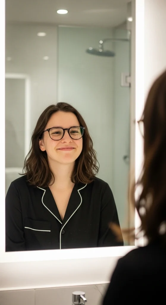 Stand in front of a mirror and imagine your future self. Notice posture, expression, and calm energy.